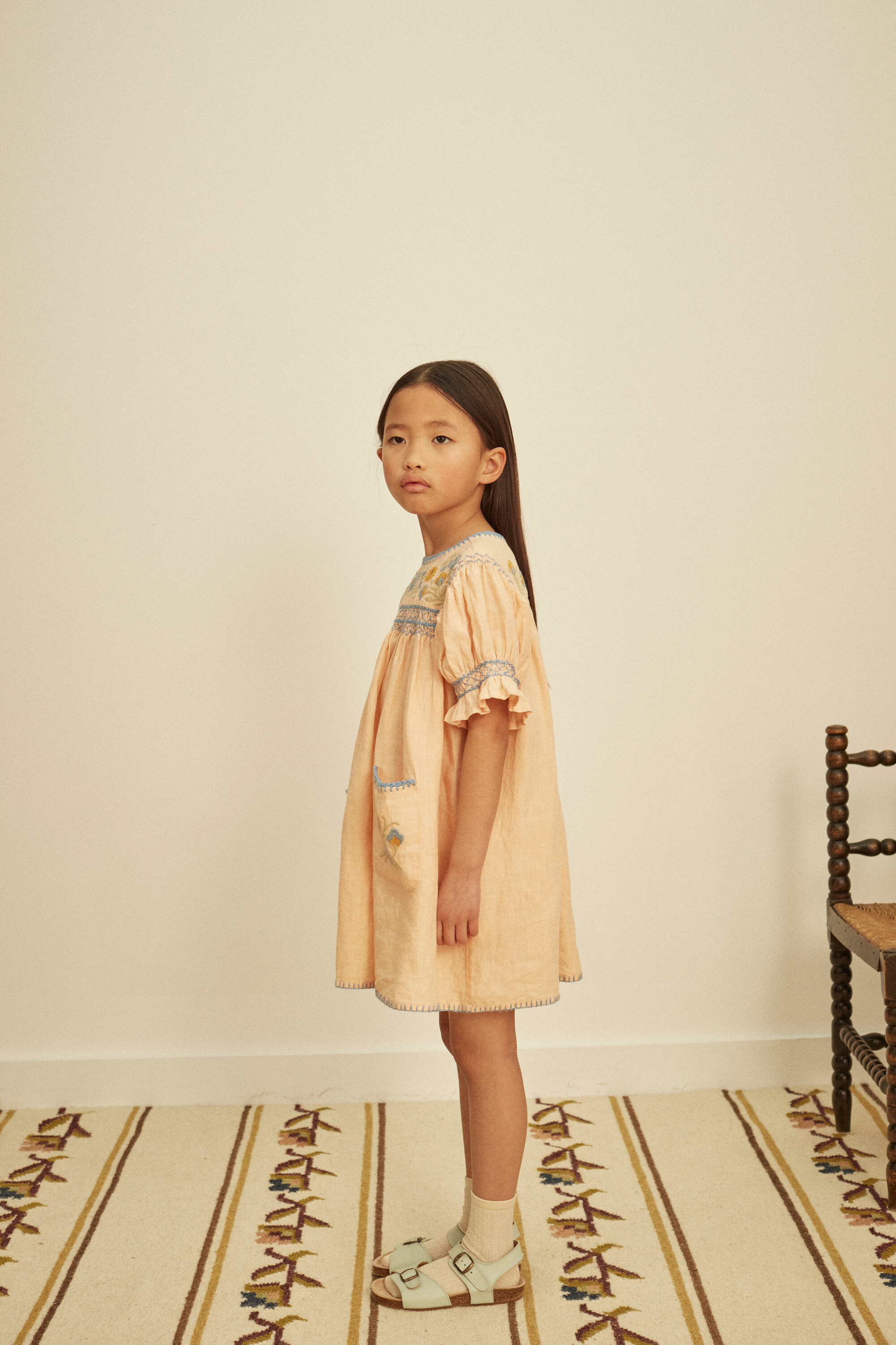 124cm tall, wearing a 5-7y sample.