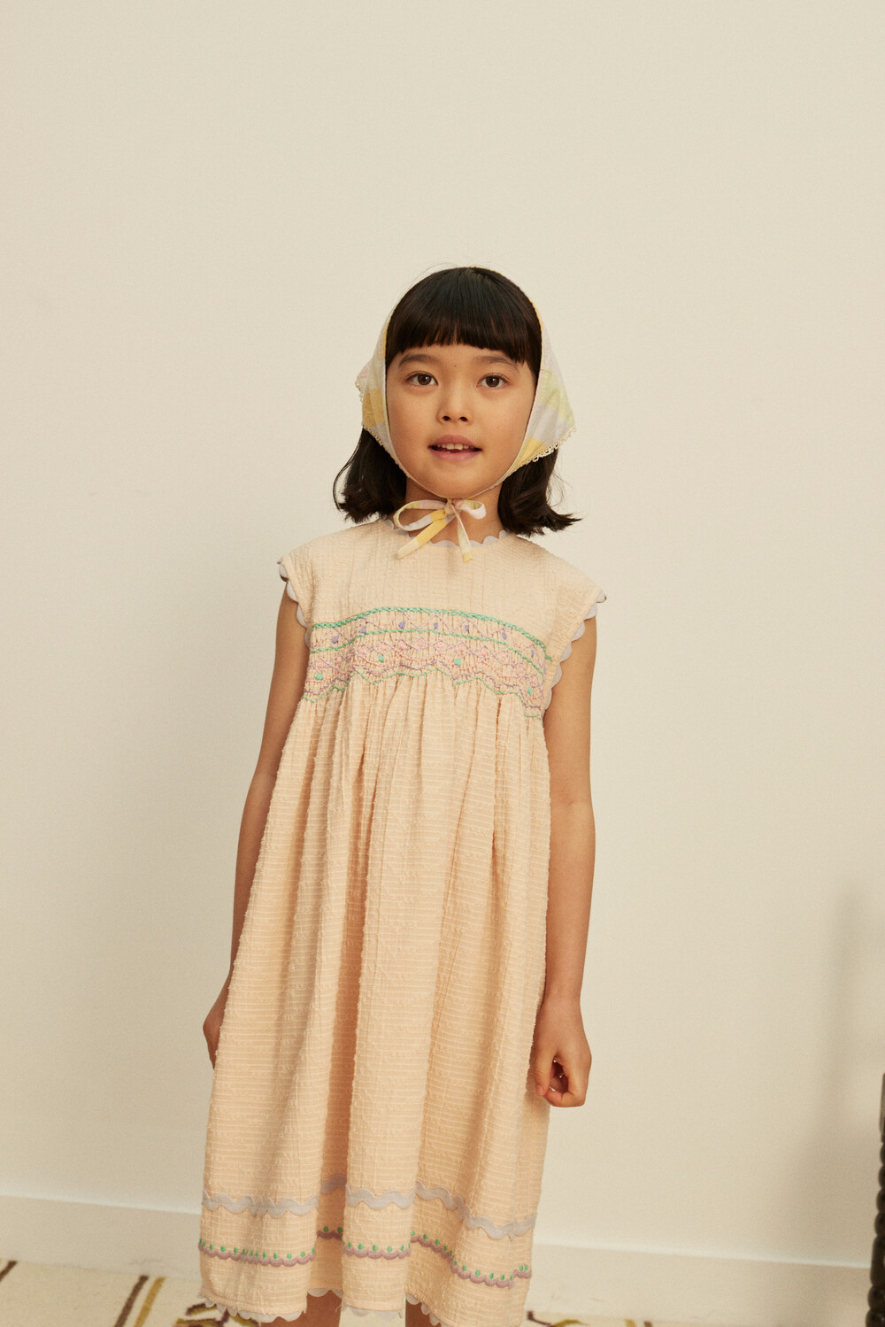 116cm tall, wearing a 5-7y sample.