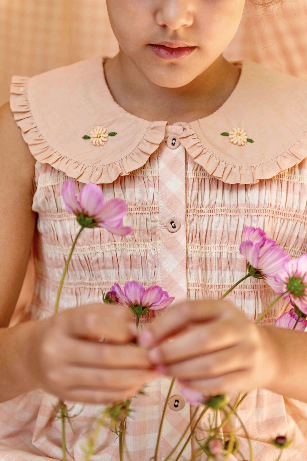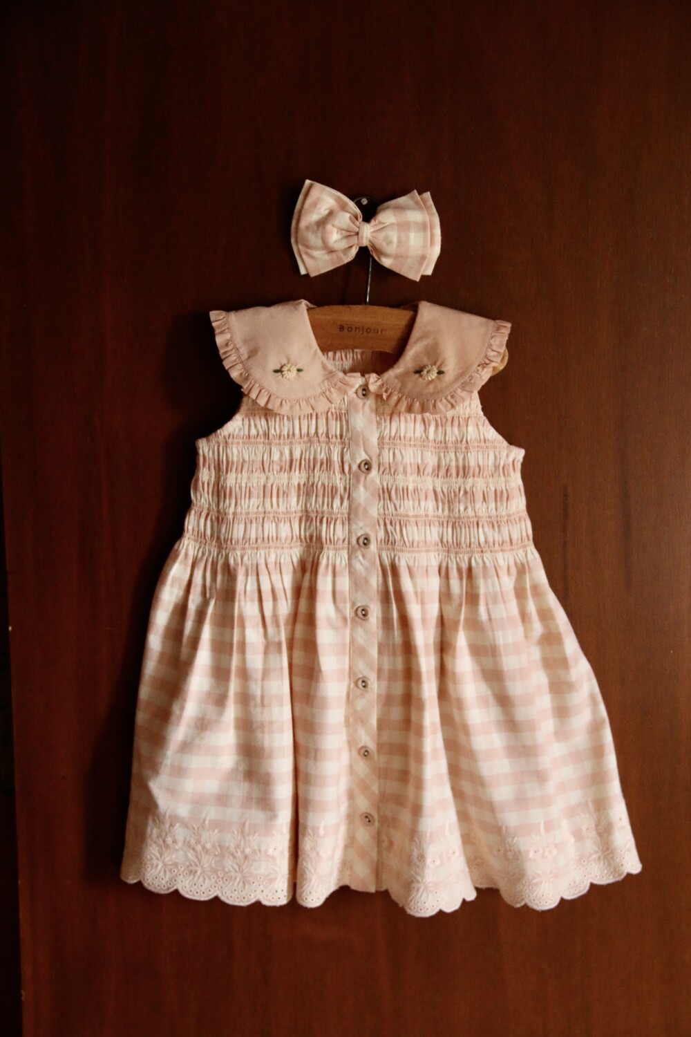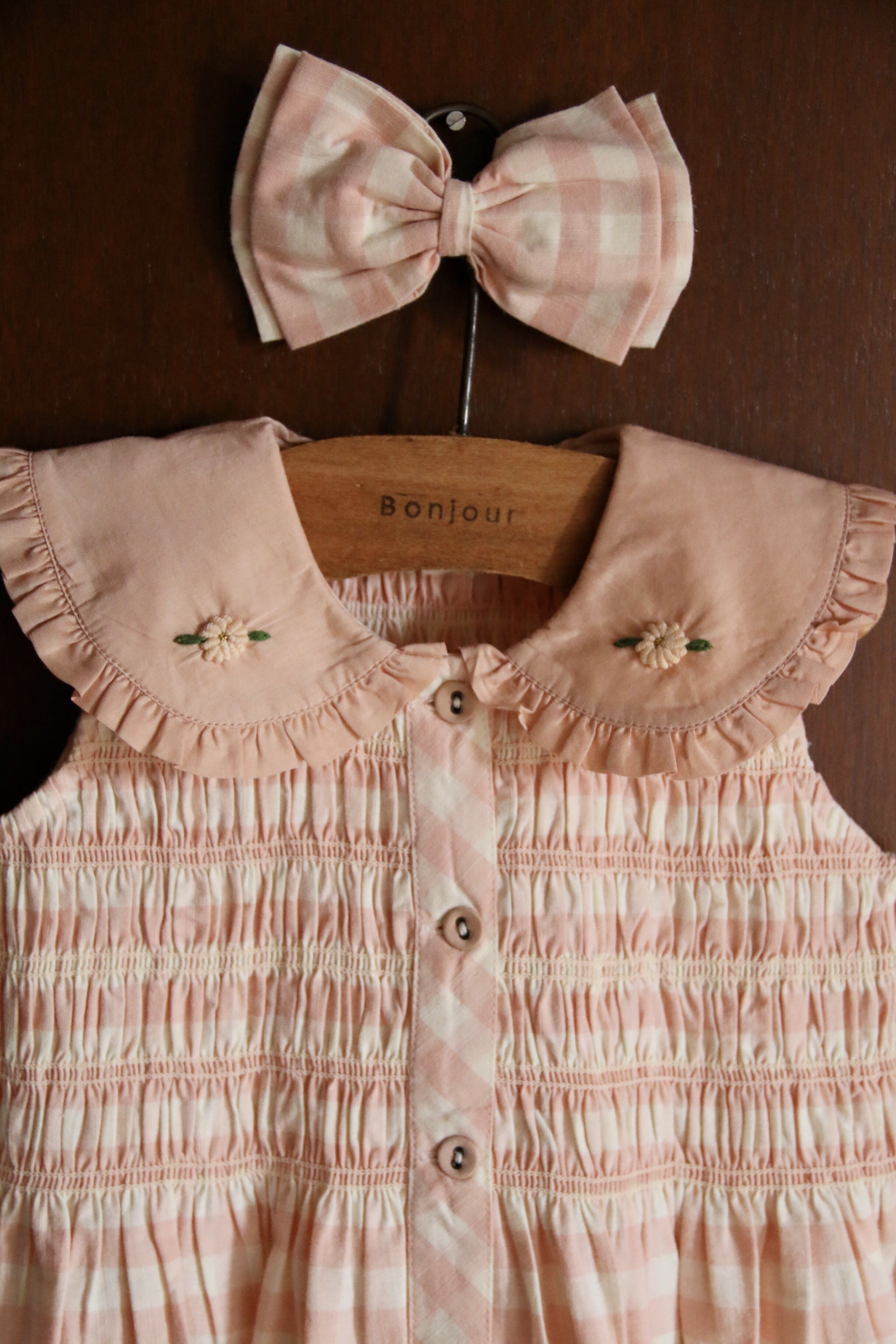 Emb tunic + hair clip_Pink Vichy
