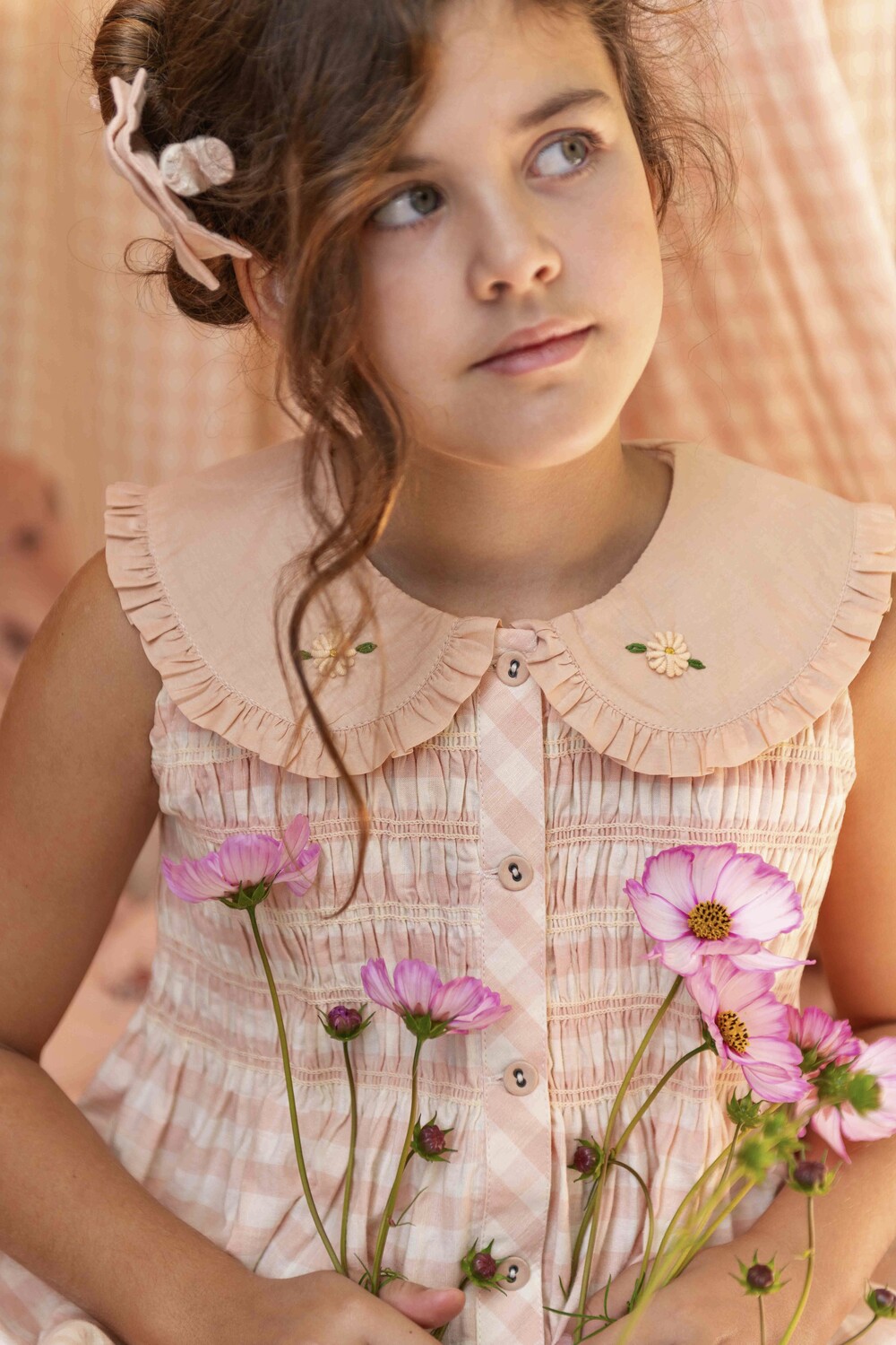 Emb. tunic + hair clip_Pink Vichy