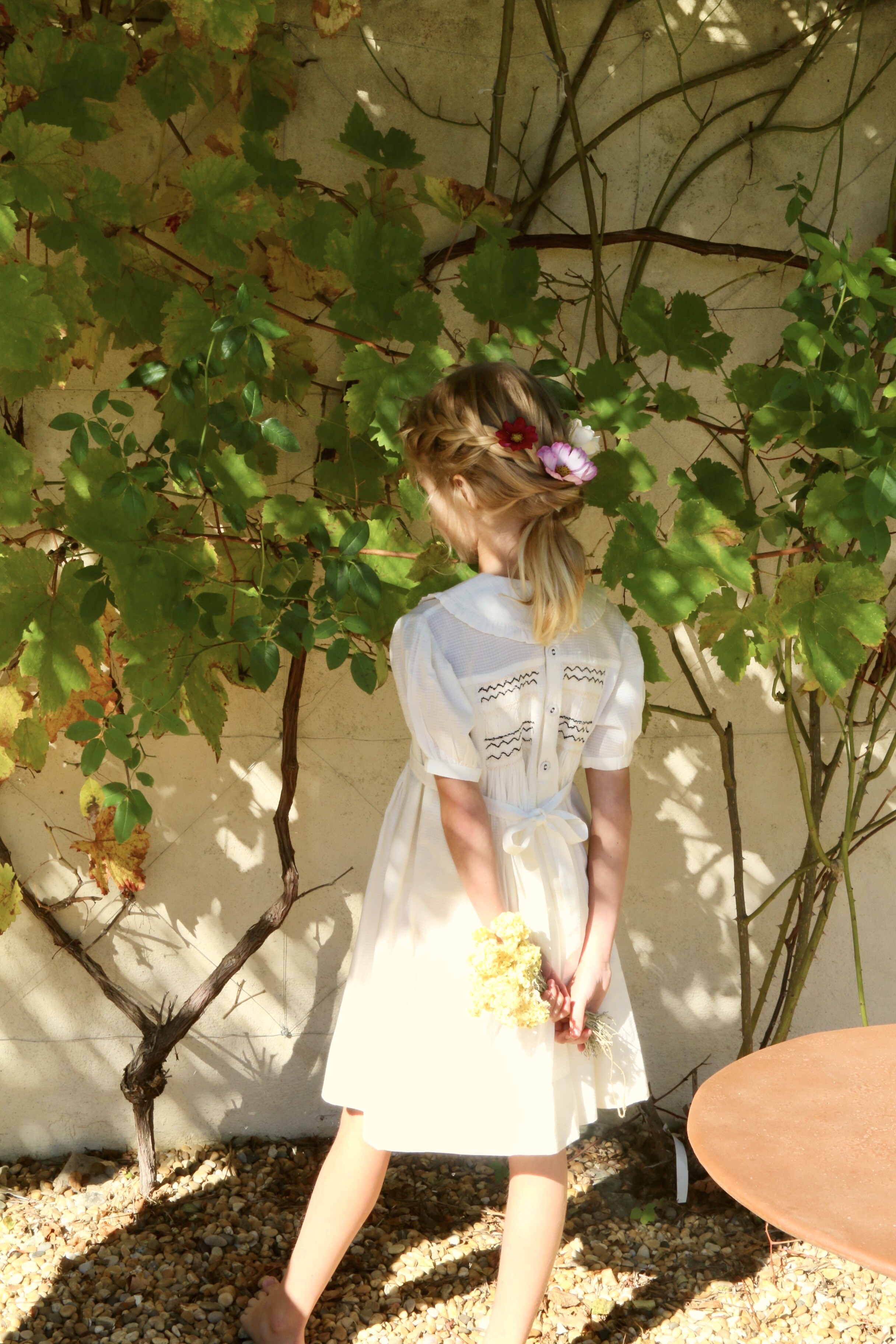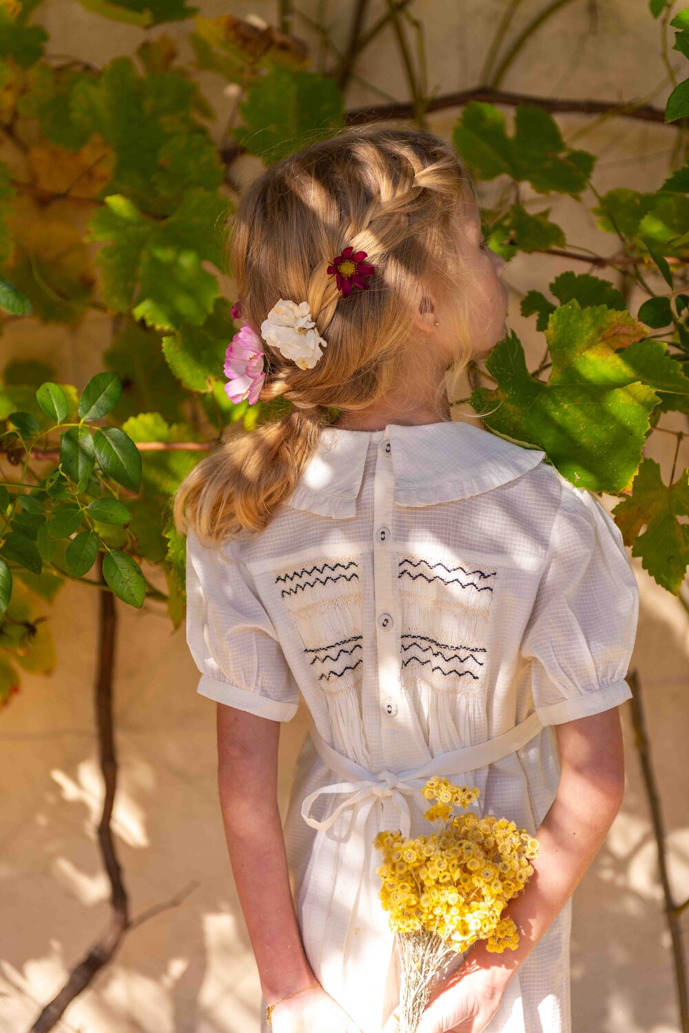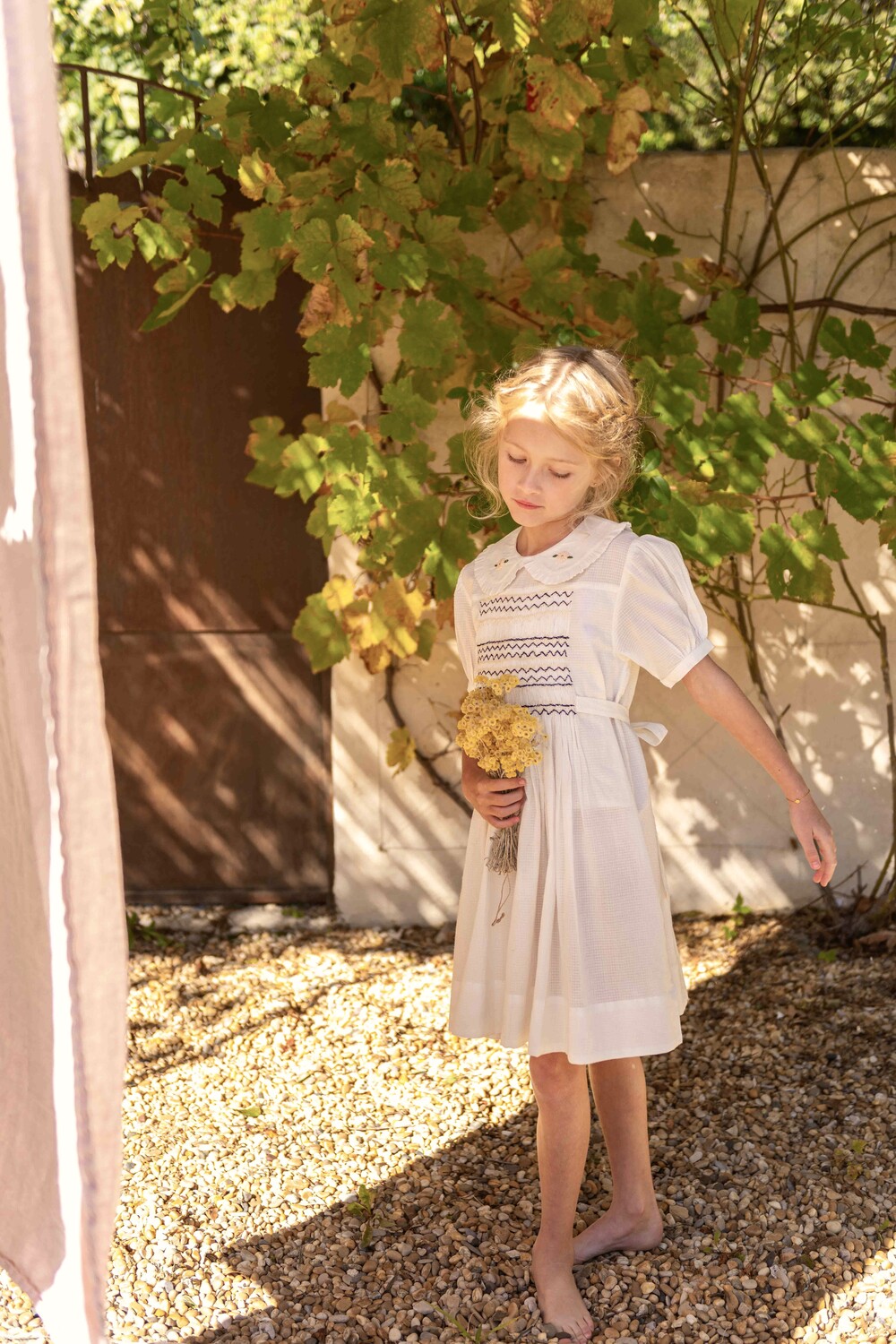Handsmock dress, Natural check voile