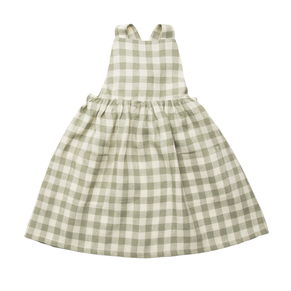 Conkers Pinafore, mint Check linen